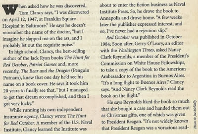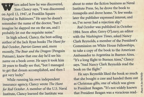 You will be sorely missed, Mr. Clancy. (Brian Klems, Writer/Editor at Writer's Digest Magazine.